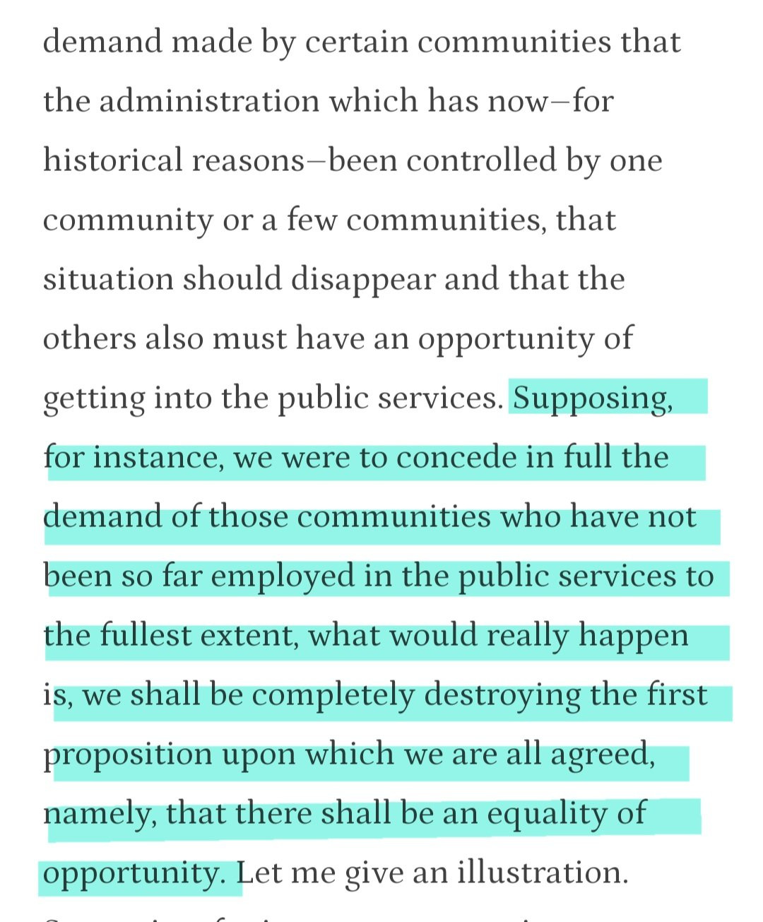 1. "We should not concede fully to all demands of communities not represented so far, as it would destroy equality".