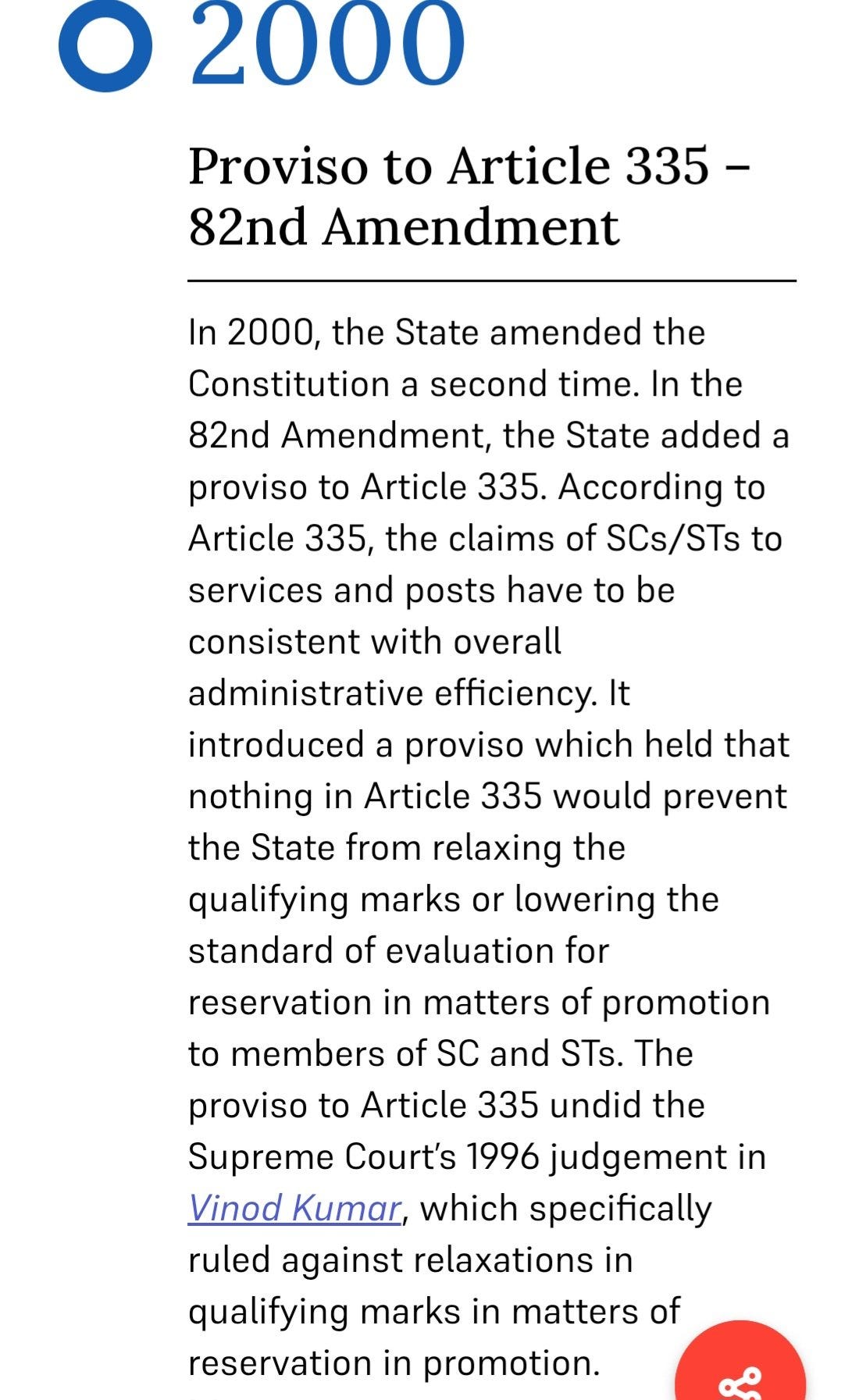 Dr. Ambedkar had originally provisioned for only 5% relaxation in qualifying marks. He also added article 335 in constitution, which mentioned that claims of SC/ST should be taken into consideration but it should be consistent with maintaining the efficiency of the administration (i.e. the quality should not be compromised). This article was, however, amended in 2000 to reduce the qualifying criteria for SC/ST.