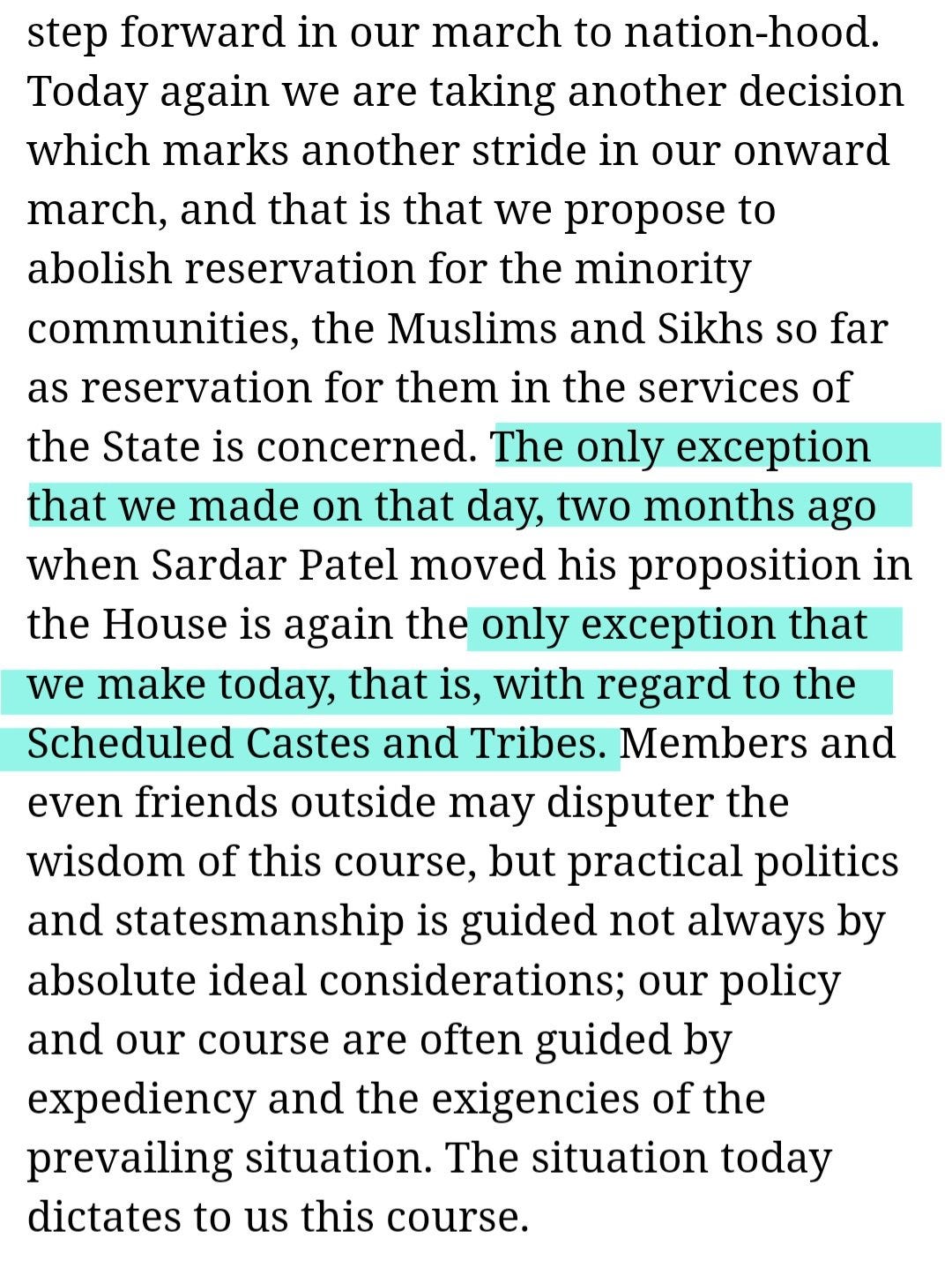 He also said that “a larger share of reservation, was not fair, in his own judgement”.