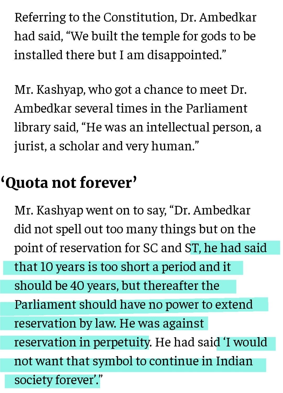 Dr. Ambedkar, actually, had visualized reservation to be a "temporary" provision. In his personal capacity, he had expressed that, although 10 yrs were a short period, reservation beyond 40 years should have been barred, by any means (legal/political).